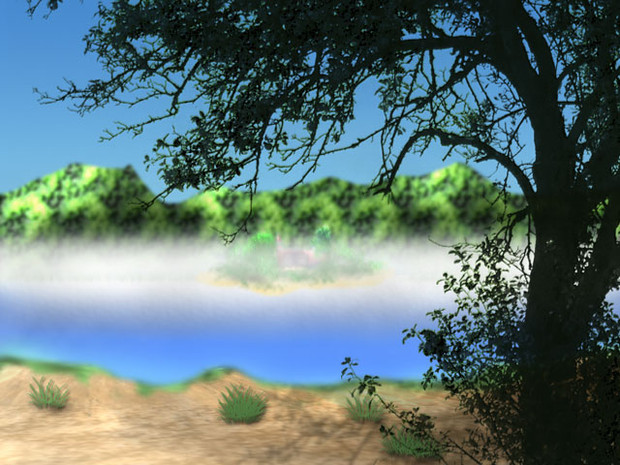 フリーイラスト 湖と木が生えた草むらの風景 パブリックドメインq 著作権フリー画像素材集