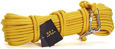 クライミングロープ プロの屋外ロック Rope10mm Yellow 10m 使い勝手の良い 直径高強度懸垂下降アブセイリングアクセサリーロープ コード2カラビナ消防救助ハイキング登山用